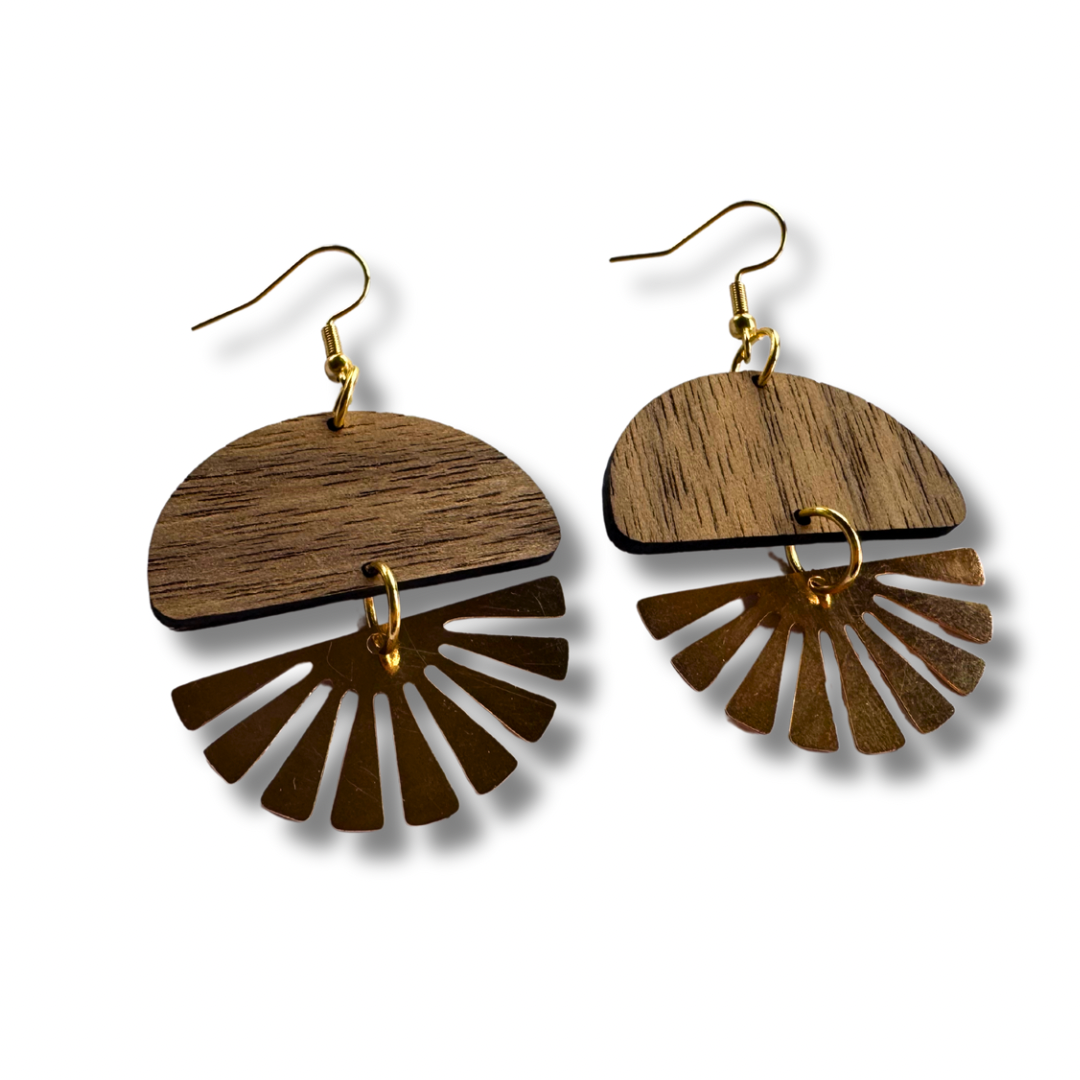 Diese Ohrringe im Boho Style bestehen aus heimischem Nussholz und vergoldetem Edelstahl. Das Design stellt absolute Natürlichkeit dar. Die Ohrhänger bieten federleichten Tragekomfort.