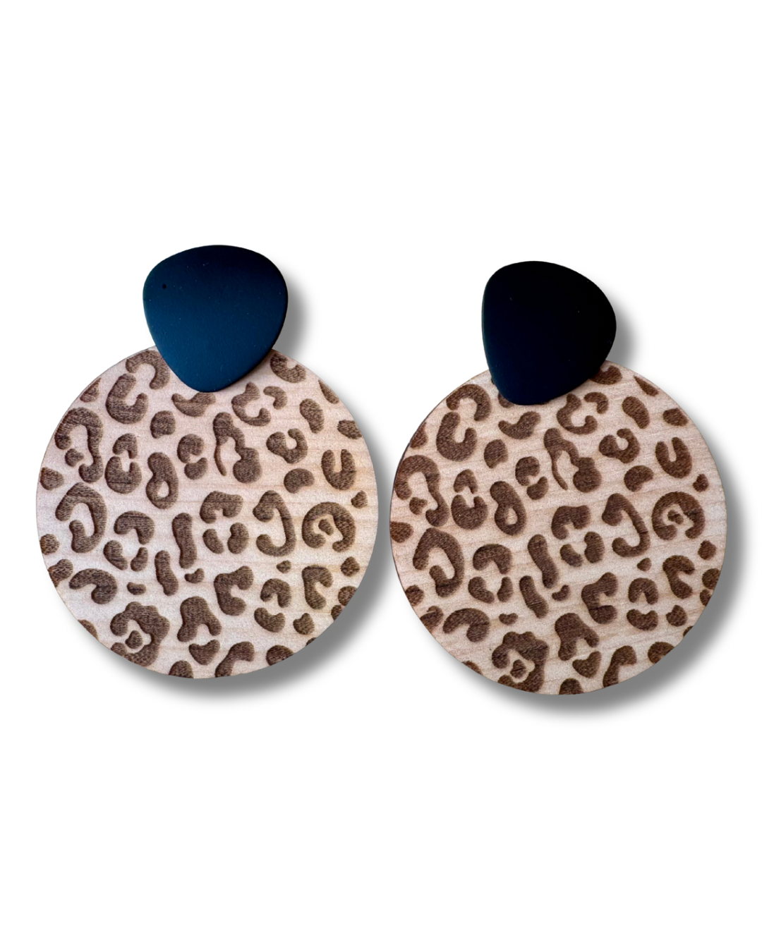 Dieses Leoparden Muster wurde in heimisches Zirbenholz gelasert. Die Ohrhänger bieten federleichten Tragekomfort.