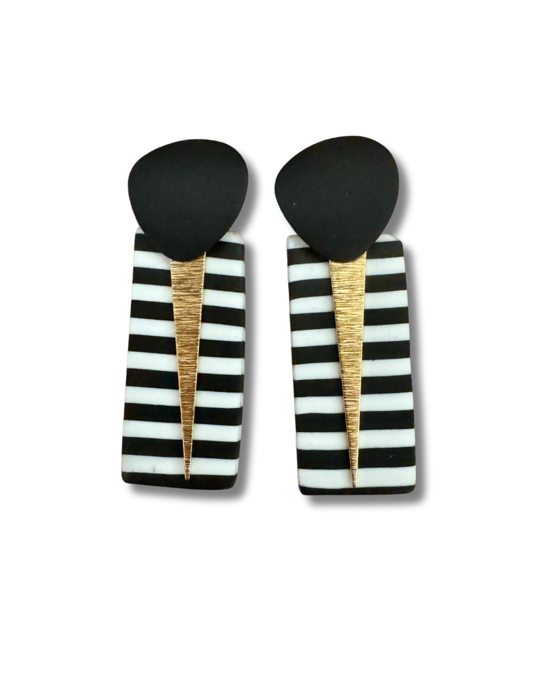 Material Stecker,schwarz lackiert & Schmuckkeramik, goldenes Detail aus Metall