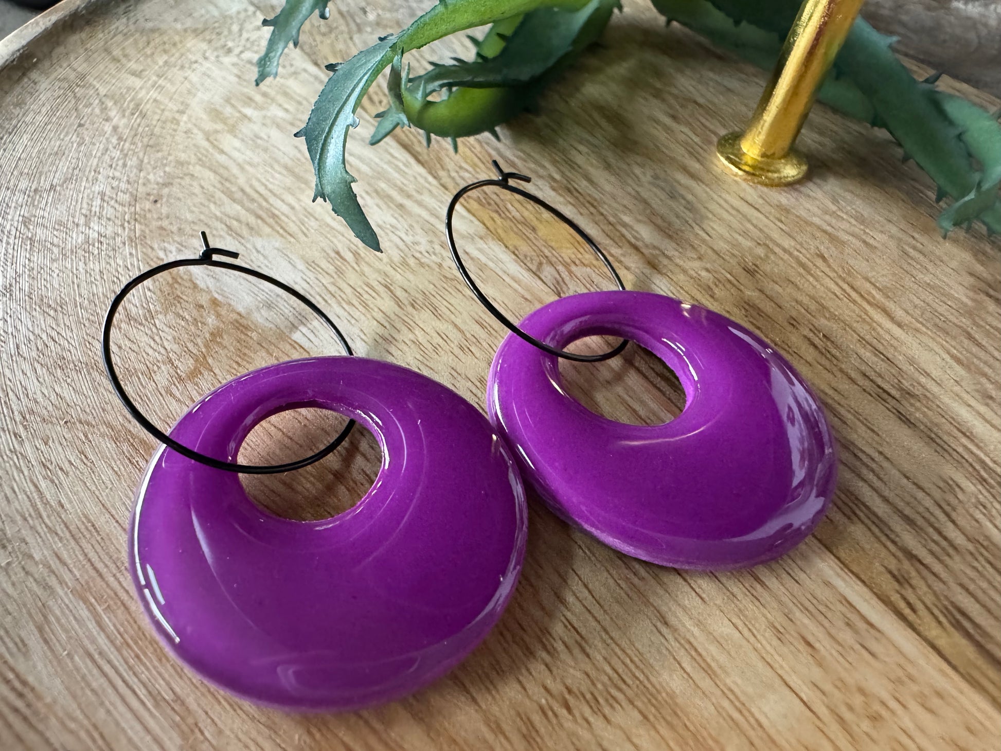 Die Ohrringe zeichnen sich durch ihre sorgfältig mit Resin versiegelte Clay-Oberfläche aus, welche die Farbbrillanz optimal zur Geltung bringt.