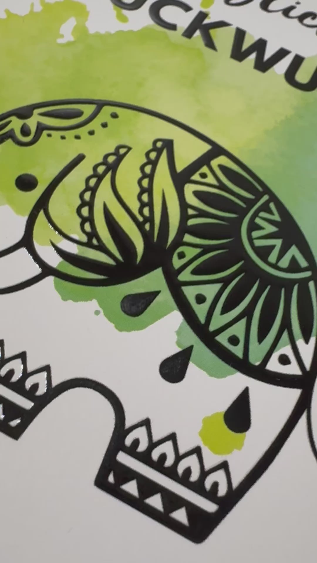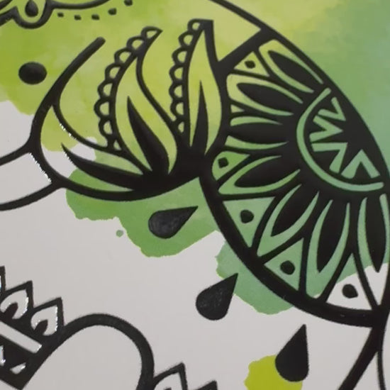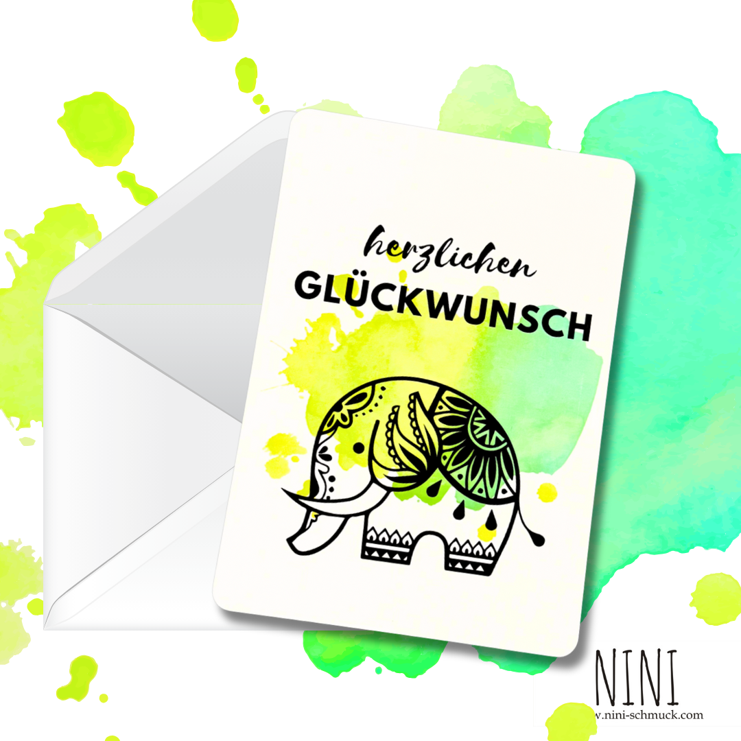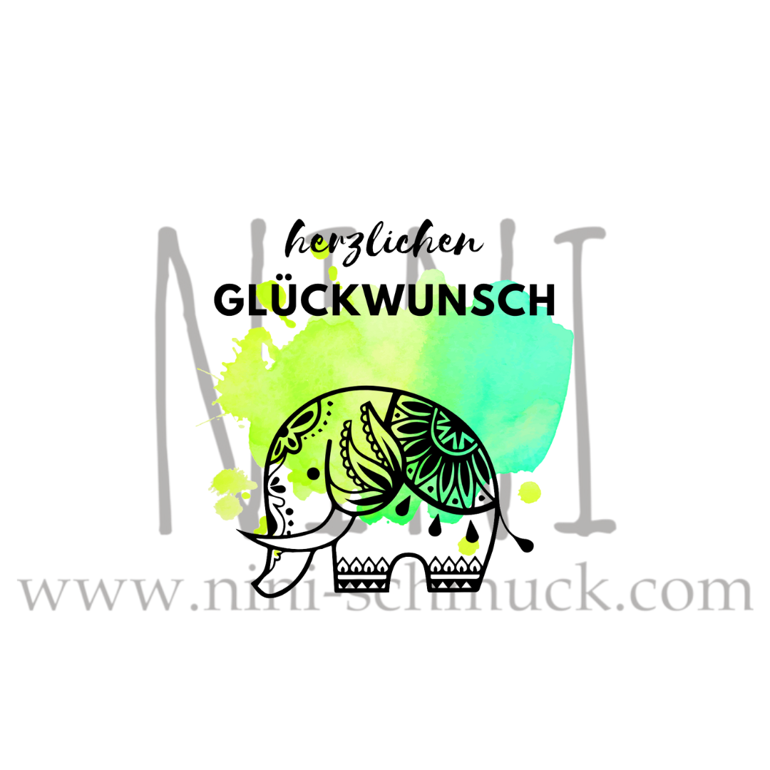Dieses wunderschöne, mit UV-Glanzlack erhabene Elefantenmotiv soll Glück und Freude bringen.