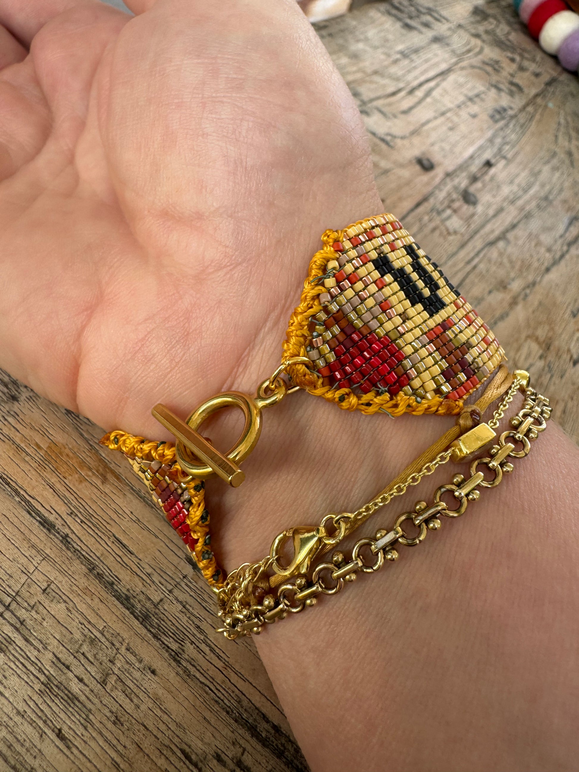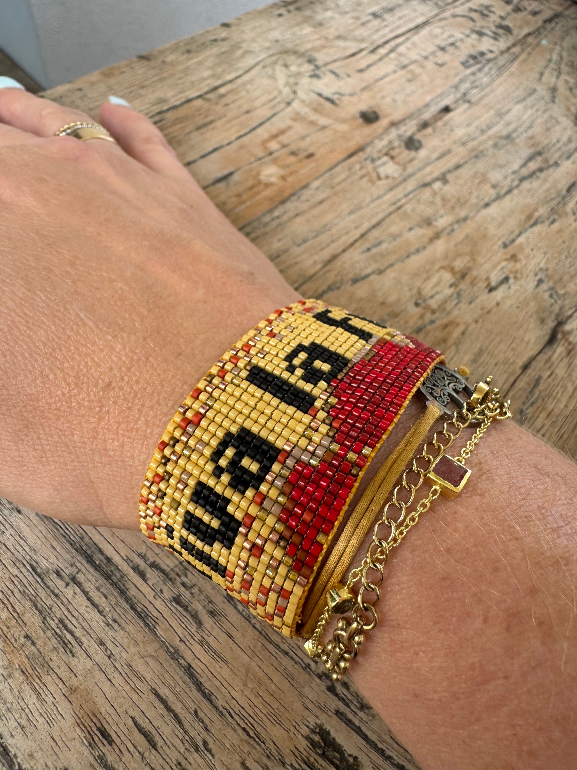 Das gewebte Armband „Viva la Frida“ aus hochwertigen Miyuki Perlen besticht durch seine feine Verarbeitung und langlebige Qualität. Es verleiht Ihrem Stil eine elegante und individuelle Note, die sich perfekt für jeden Anlass eignet. Tragen Sie „Viva“ und setzen Sie ein modisches Statement mit zeitloser Schönheit.